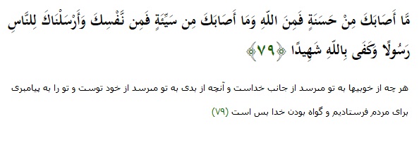 حتی اگر تصمیمی را بگیریم که خدا راضی نباشد، بازهم او جلو مارا نمیگیرد....کما که چـقـــــــــــدر در طول تاریخ این انبیا و اولیای الهی رو دشمنان کشتند! ممکن است خدای ناکرده من در ایران نشسته باشم اما برای خارجی ها جاسوسی کنم....در همین حال که جاسوسی میکنم بازهم شناسنامه ام ایرانی است و در درون ایران هم زندگی میکنم...انسان رها نشده، بدین معنا که مستقل نیست جوری که خودش با قدرتی که از خودش دارد تصمیم بگیرد ولی انتخابگر هم آفریده شده است هم او که خلقش کرد، بهش قدرت داد تا تصمیم بگیرد اما در گزینش راه خوب یا بد، این قدرت را به او داد که هم راه بد و هم راه خوب، هر کدام را بخواهد انتخاب کند و به طبع آن نتایج آن کارش را در تمــــــام عالم اثر داد. و جهان شد یک مجموعه ای از موثِرات انسان! یعنی مجموعه ای که دائماً در حال تاثیر پذیرفتن از اعمال ما و رخدادهای طبیعی است!