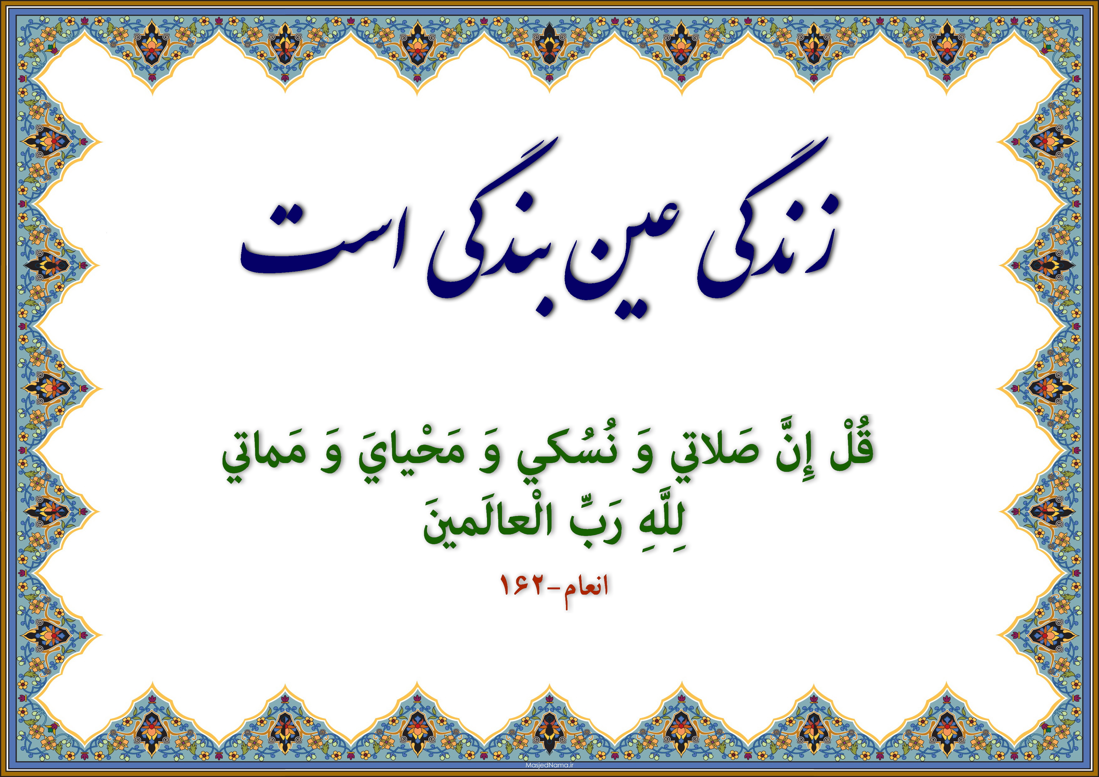 اگر واقعاً بخواهیم زندگی کنیم،اول باید بفهمیم: زندگی عین بندگی است...همانطور که در قرآن فرمود: قُلْ إِنَّ صَلَاتِی وَنُسُکِی وَمَحْیَایَ وَمَمَاتِی لِلَّـهِ رَبِّ الْعَالَمِینَ...زندگی حقیقی همین است...در بندگی حضرت حق است، مابقی خدا داند که چیست!